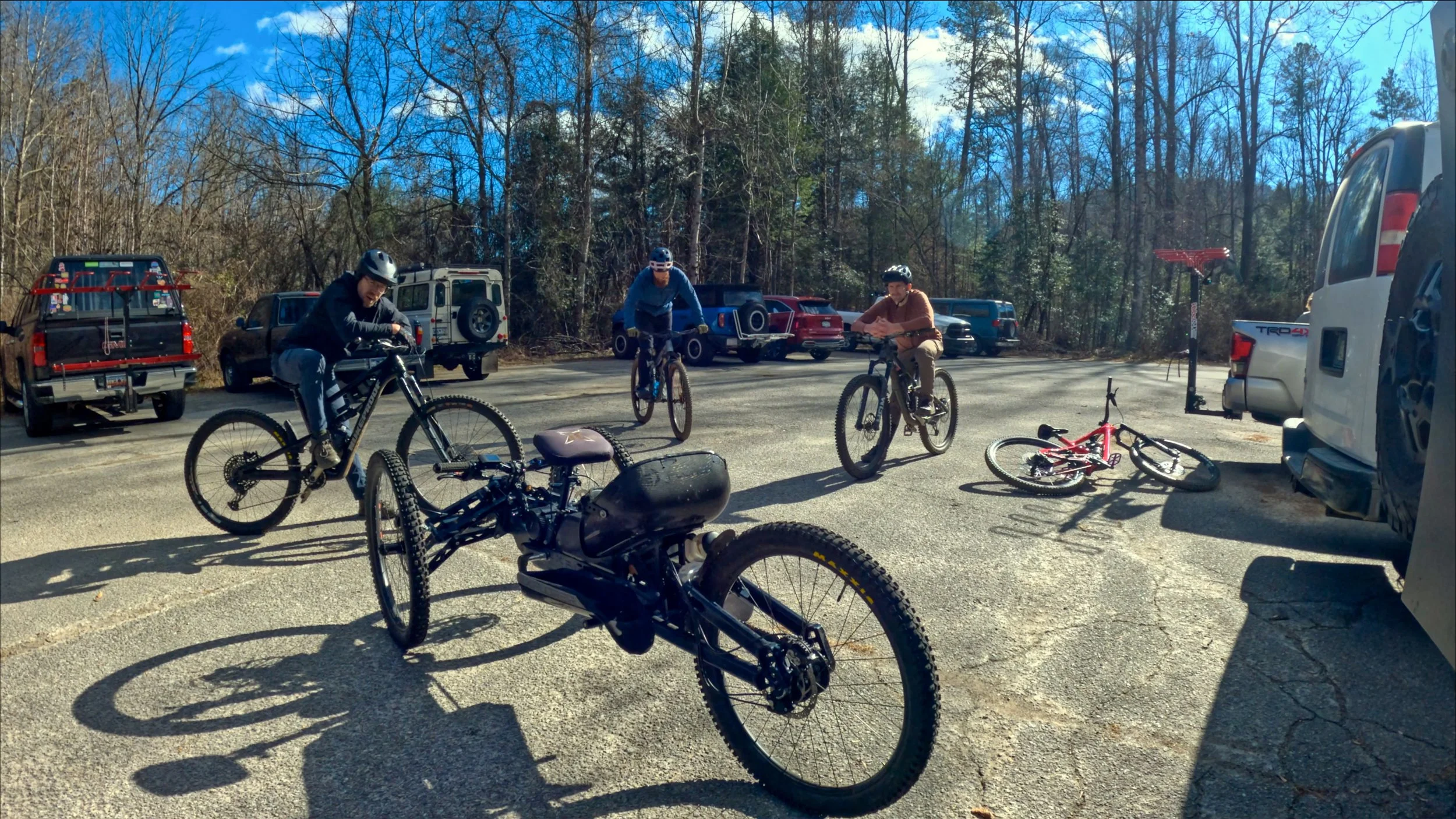 Lower Black is what the locals call this trail, but the official name is Black Mountain Trail (Lower). The climb, Thrift Cove, is listed as a blue trail on TrailForks, but is basically a two mile fire road. It is quite grueling and feels longer than that though. The route itself is very short and multiple laps seem ambitious, unless you’ve got a power assist. I’m told the upper and middle sections are a no go for adaptive riders. The descent on Lower Black is fast, fun, worth the effort, and over way too soon. It is littered with fun stuff to play with: rock sections, roots, double fall Iines, berms. It ends with a long chunky rock section that drops back onto the climb trail. All the bridges are wide enough. You’ll definitely need suspension for this trail and clearance will absolutely help. You can get some extra credit by incorporating a lap on a short section of Sycamore Cove Trail, but be sure to consult the suggested routes below because most of the trail is a no go and only one section of it is good. Riders with front wheel drive will need help for sure on the connector trail that leads out of Sycamore. Consult trail descriptions below. Beware hiker traffic, especially towards the bottom.